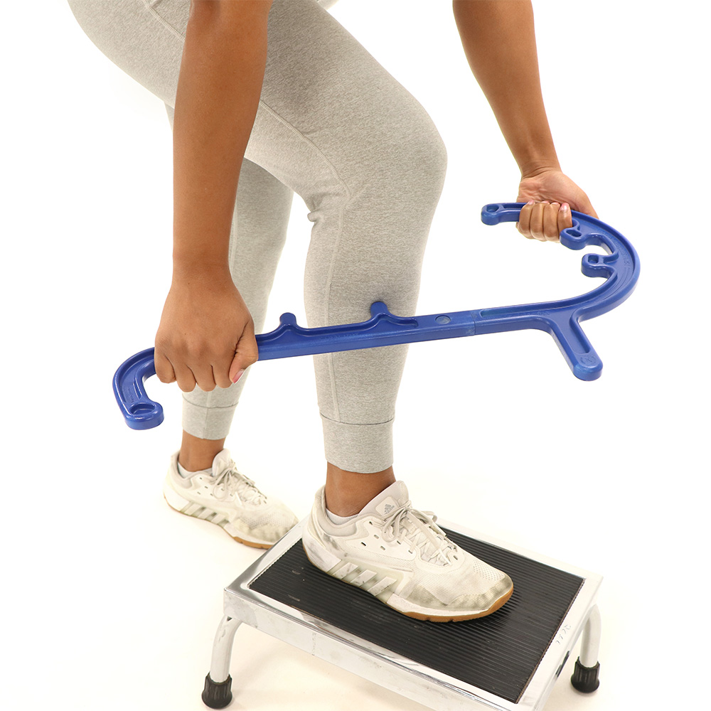Hold the Tiger Massage Hook with both hands and position one of the six nodes on the targeted muscle. Apply pressure and dig the nodes onto the muscle or massage along the muscle path.